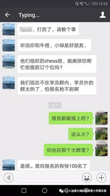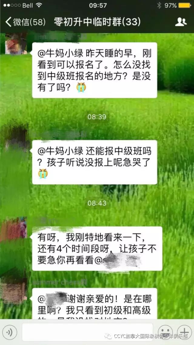 借最后这位朋友的吉言,我们现在看来确实是名声在外了,这一点要不是赶上这次报名,其实连我们自己都没意识到。在出现了第一天的‘挤兑’状况后,有些还没报名的零基础班家长坐不住了,有的开始发帖询问看看谁认识已经报名的家长,想找他们要来报名链接提前占位,有的干脆找到我们身边的一些好朋友来说情,谢谢吧!希望大家报名成功后,也能用同样的热情在平时课后配合我们来督导您的孩子学习chess。