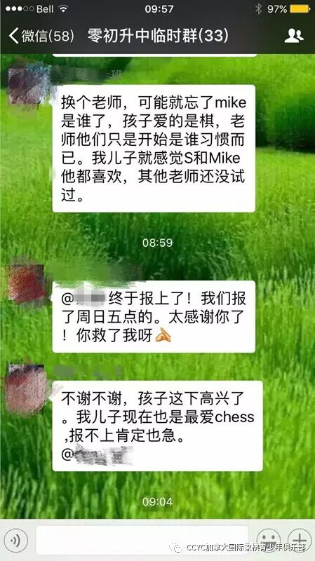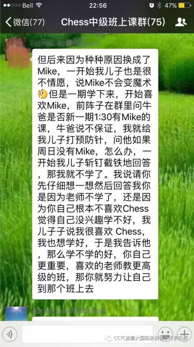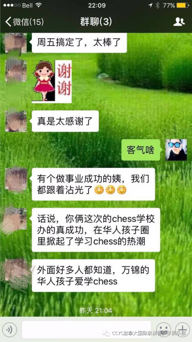 以上就是发生在我们CCYC国际象棋学校上周末报名期间的故事,我和牛妈就是两个普通的棋爸棋妈,走过弯路,尝过艰辛,也有过一点小经验,我们希望能把这些跟更多的同路人分享,让更多的华人的孩子们了解chess喜欢chess,并从中收益,预祝这一期的三百个孩子们学习进步乐在其中,我是你们的王校长,我爱你们。